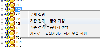 - PJ2를 마우스 오른쪽 버튼으로 클릭하고 기존 전기 부품에 지정을 선택합니다.
