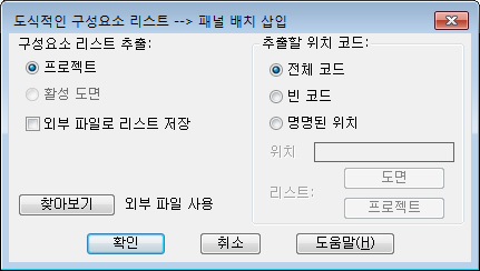 주: 패널 배치 - 구성요소 삽입/편집 대화상자는 패널 외곽설정을 삽입할 때마다 표시됩니다. 구조도 표현에 대한 정보는 패널 외곽설정 표현에 자동으로 전달됩니다.