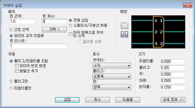 삽입점 지정 또는 [Z=줌, P=초점이동, X=와이어 교차, V=수평/수직, Tab=반전(Flip)]: