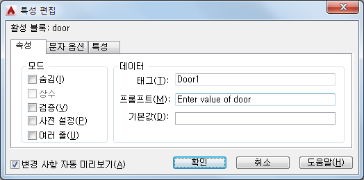 블록을 삽입할 때 속성에 지정된 기본값을 설정합니다.