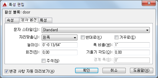 속성 문자의 문자 스타일을 지정합니다. 이 문자 스타일의 기본값이 이 대화상자에 표시된 문자 특성으로 지정됩니다.
