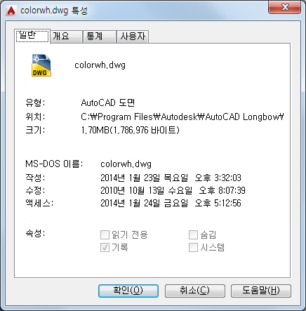 파일이 작성되었을 때 MS-DOS 이름을 표시해 주고 이 파일이 마지막으로 수정되고 액세스된 날짜와 시간을 표시해 줍니다.