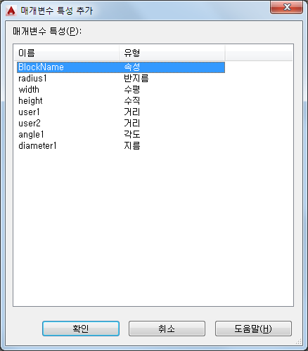블록 특성 테이블에 추가할 수 있는 매개변수의 이름을 표시합니다.