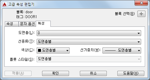 속성이 켜진 도면층과 속성 문자의 선가중치, 선종류 및 색상을 지정합니다. 도면이 플롯 스타일을 사용하는 경우, 특성 탭을 사용하여 속성에 플롯 스타일을 지정할 수 있습니다.