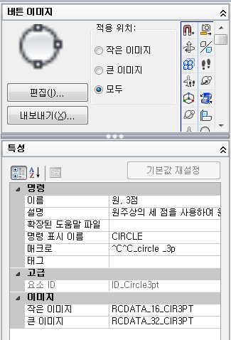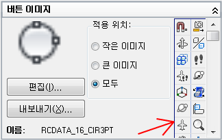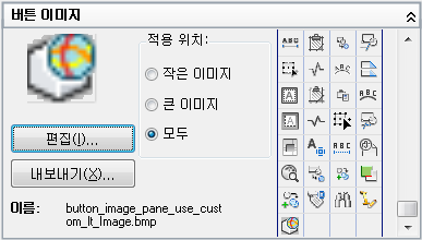 버튼 이미지 창의 적용 위치 아래에서 작은 이미지, 큰 이미지 또는 모두 중 원하는 이미지 지정 옵션을 선택합니다.
