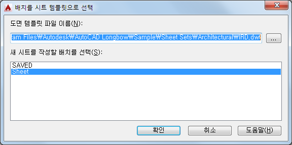 새 시트에 사용할 도면 템플릿 파일의 배치 이름을 나열하고 지정합니다.