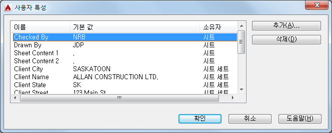 사용자 특성 추가 대화상자