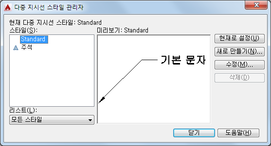 스타일 리스트에서 선택된 다중 지시선 스타일을 현재 스타일로 설정합니다. 모든 새 다중 지시선은 이 다중 지시선 스타일을 사용하여 생성됩니다.