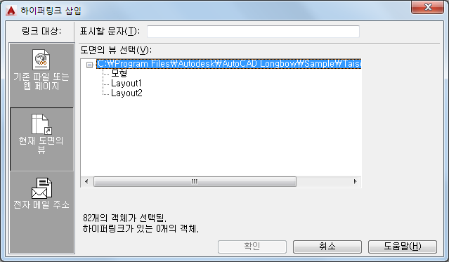 현재 도면 내에 명명된 뷰의 확장 가능한 트리 뷰를 표시하여 링크할 뷰를 선택할 수 있습니다.