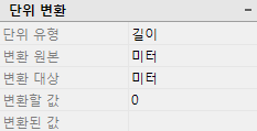 단위 변환은 길이, 면적, 체적 및 각도 값에 사용할 수 있습니다. 선택한 단위 유형에 따라 변환 원본 단위 리스트와 변환 대상 단위 리스트를 선택할 수 있습니다.