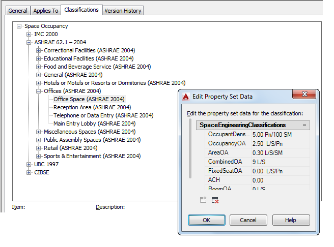 특성 세트 데이터 편집 대화상자에 분류 값이 표시됩니다.