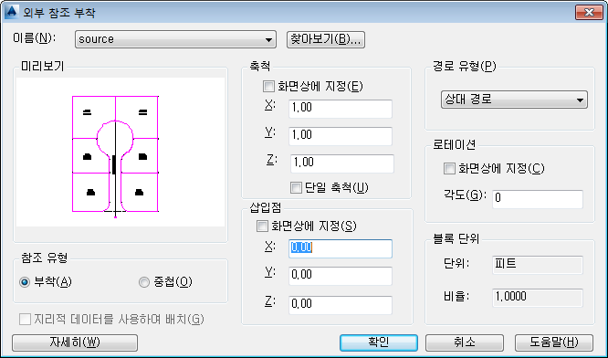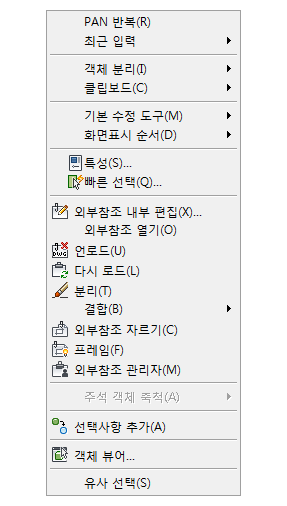 그림 16: 외부 참조 객체 상황에 맞는 메뉴