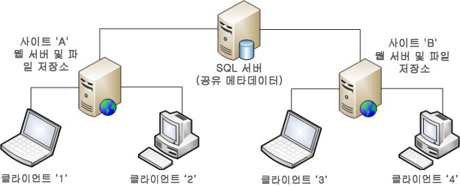 두 번째 방법은 데이터베이스가 있는 기본 사이트와 기본 파일 저장소를 같은 서버에 두도록 설정하는 것입니다. 기본 사이트에 대부분의 사용자가 있으며 여기서 대부분의 설계 작업이 수행됩니다.