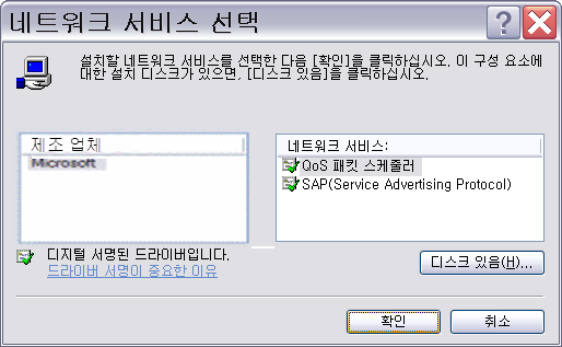 - 네트워크 서비스 선택 대화상자에서 Microsoft 네트워크용 파일 및 프린터 공유를 선택합니다.
