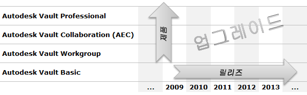 이 업그레이드 프로세스는 모든 Autodesk Vault 제품 버전에 적용됩니다. 상세 정보는 릴리즈 2009 이상에 대해 제공되지만 일반 프로세스는 모든 릴리즈에 적용할 수 있습니다. 업그레이드는 최신 릴리즈, 최신 제품 버전 또는 둘 다를 의미할 수 있습니다. 업그레이드 시 먼저 가장 높은 릴리즈로 업그레이드한 다음 제품 버전을 업그레이드합니다.