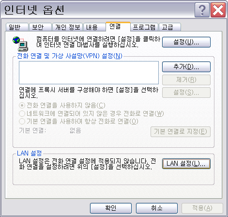 Internet Explorer 6.x 및 7.x에서 프록시 설정 변경