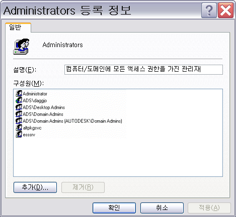 현재 사용자가 Windows 관리자 그룹의 멤버가 아닌 경우 현재 사용자 계정을 Windows 관리자 사용자 그룹에 추가하거나 관리자 자격의 사용자로 로그인하여 Autodesk Data Management Server를 설치합니다.