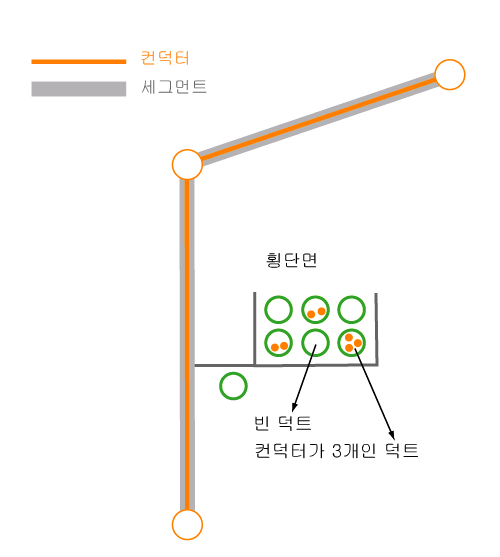 전기 NA에서 세그먼트와 컨덕터는 형상과 함께 저장되며 덕트는 형상이 없는 속성 피쳐 클래스입니다. 횡단을 사용하여 지도에 모든 요소를 제공할 수 있습니다.