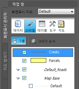 화면표시 관리자 탭에는 현재 지도의 도면층이 표시됩니다.