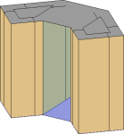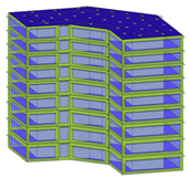 유리는 각 매스 외부 벽에 스트립 창으로 적용됩니다. 유리는 대상 유리 비율과 대상 씰 높이 값을 모두 사용하여 계산됩니다. 직사각형 모양은 양식 면 안에 맞아야 하고 지정한 비율이 수용되지 못할 수도 있으므로 유리 비율은 대상 값입니다.