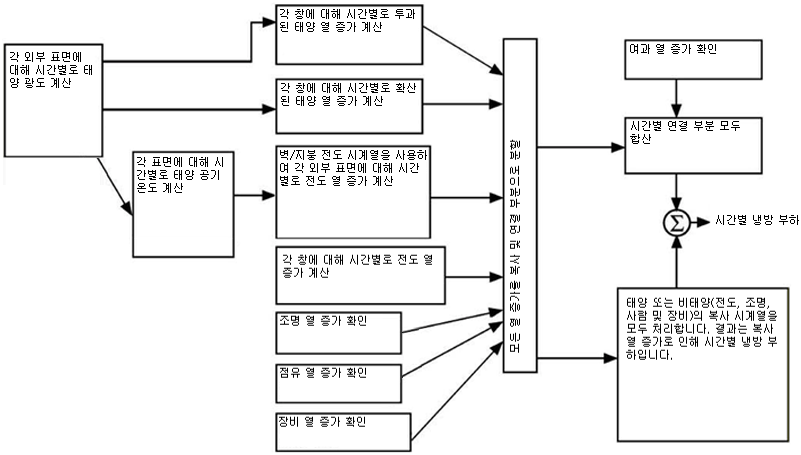 냉방 부하 계산에서는 건물 열 전달 과정에서 발생하는 두 가지 시간 지연 효과를 해결해야 합니다.