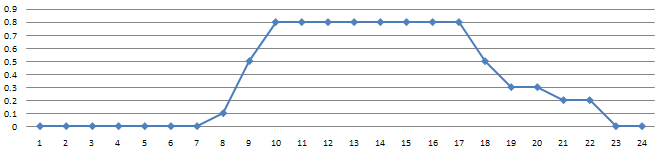 조명 일람표 - 공간에서 조명 증가가 발생하는 시간