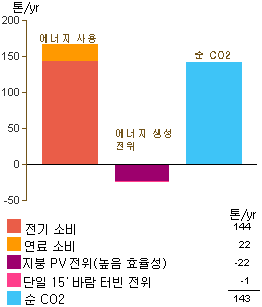 에너지 사용 해석된 모델의 전기 및 연료 소비에 대해 예측되는 연간 CO2 방사입니다.