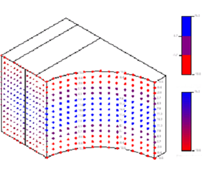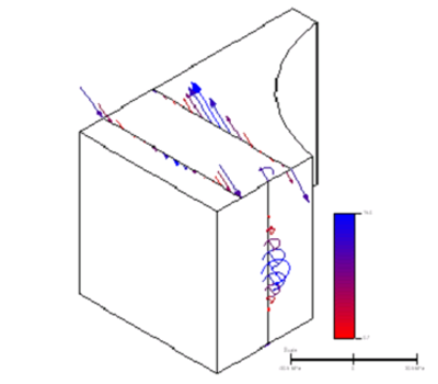 해석 데이터 점에서 생성된 색상이 지정된 벡터 화살표를 표시합니다. 벡터 선은 데이터 점 축의 시작에서 끝까지, 그리고 축 주위에 그릴 수 있습니다. 점마다 해석 결과를 나타내는 구성 가능한 해당 숫자가 있습니다.