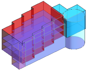 아트리움을 작성하려면 큰 매스 모델에서 다른 매스 바닥 구성을 가진 작은 아트리움 매스 양식을 작성합니다. 큰 매스 모델 안에 아트리움 매스를 배치합니다.