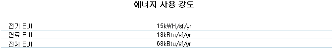 | 전기 EUI | 바닥 면적당 연간 전기 사용을 측정하는 것입니다. |