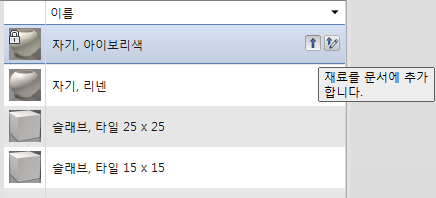 현재 프로젝트에 재료를 추가하려면 먼저 기존 라이브러리에서 재료를 찾고 다음 방법 중 하나를 사용합니다.