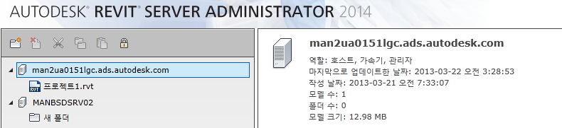 Revit Server 관리자를 사용하여 Revit Server 호스트의 폴더 및 중앙 모델을 관리하고 관리 작업을 위해 모델을 잠글 수 있습니다.