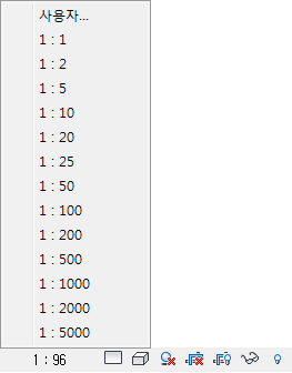 - 뷰 축척을 변경합니다. 뷰 조절 막대에서 축척에 원하는 축척을 선택합니다.
