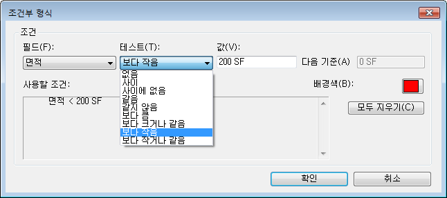 조건부 형식 대화상자가 열립니다.