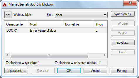 Pozwala edytować definicje atrybutów w blokach, usuwać atrybuty z bloków i zmienić kolejność, w jakiej będą się pojawiać monity dotyczące wprowadzania wartości atrybutów podczas wstawiania bloku.