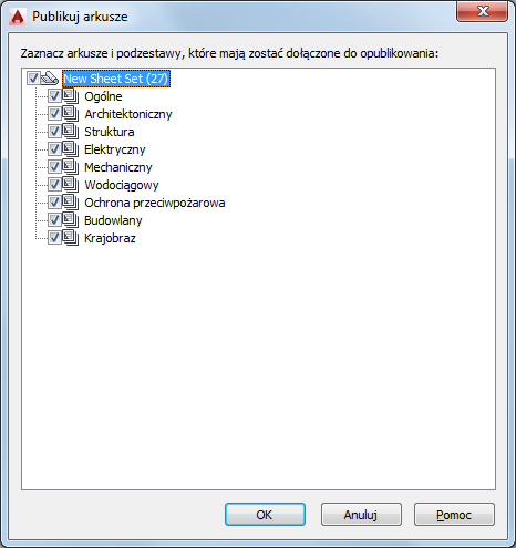 Określa arkusze, które zostaną przeznaczone do opublikowania.