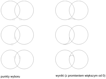 Pomiędzy łukami, a okręgami może istnieć więcej niż jedno zaokrąglenie. Wybierz obiekty w pobliżu miejsca, w którym mają być umieszczone punkty końcowe zaokrąglenia.