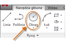 Domyślna opcja polecenia OKRĄG wymaga określania punktu środkowego i promienia.