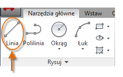 Zamiast tego można wpisać wyraz LINIA lub tylko literę L w oknie poleceń, a następnie nacisnąć klawisz Enter lub spacji.