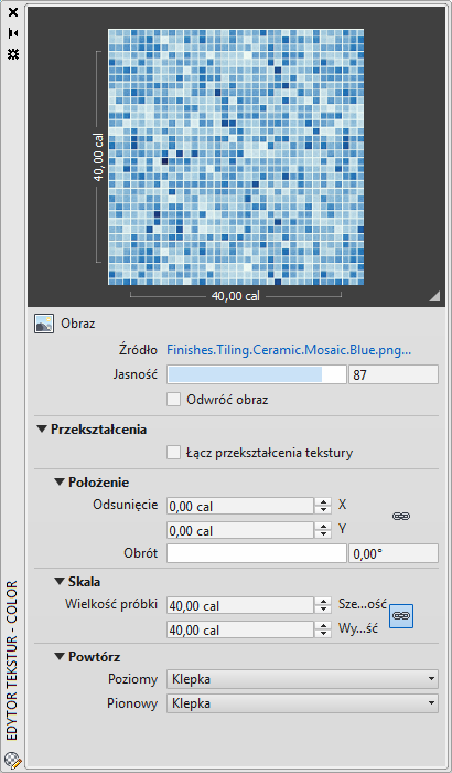 Umożliwia edycję właściwości obrazu lub tekstur proceduralnych.