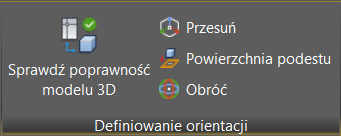 - Karta Definiowanie orientacji na pasku narzędzi wstążki stanie się aktywna i dostępne będą polecenia Przesuń i Obróć umożliwiające dopasowanie orientacji modelu do bloku.