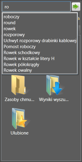 - Wprowadź nazwę komponentu lub wartość parametru w polu wyszukiwania w górnej części Przeglądarki zasobów. Podczas wyszukiwania wartości parametrów przeszukiwane są następujące parametry: Nazwa, Autor, Kategoria, Komentarze, Firma, Słowa kluczowe i Tytuł.