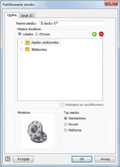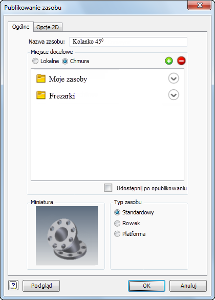 w celu wyświetlenia okna dialogowego Publikowanie zasobu.