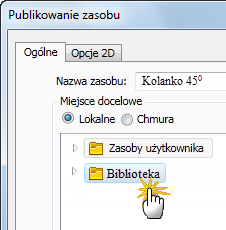 Po uaktywnieniu projektu biblioteka projektu pojawia się w oknie dialogowym Publikowanie zasobu pod nazwą Biblioteka.