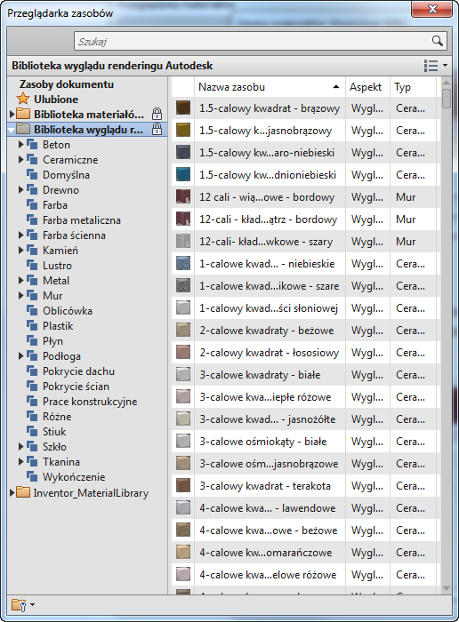 Materiały w produktach Autodesk oznaczają rzeczywiste materiały, takie jak beton, drewno i szkło.
