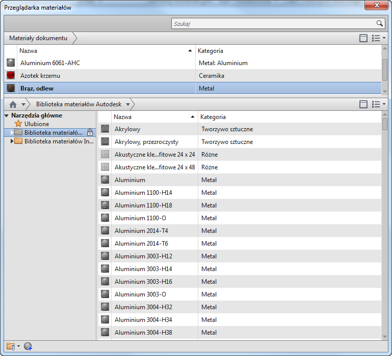 Do zarządzania materiałami służy Przeglądarka materiałów i Edytor materiałów.