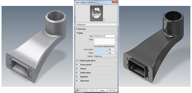 Wyglądy są wyświetlane w różny sposób, w zależności od używanego stylu wizualnego. Style wizualne Cieniowany różnią się od stylów Realistyczny z powodu właściwości wyglądu używanych do wyświetlania tych stylów.