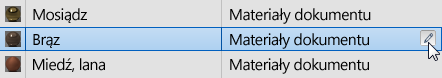 , który również umożliwia dodanie materiału do listy materiałów dokumentu. Zostanie otwarty Edytor materiałów z wyświetlonym wybranym materiałem.
