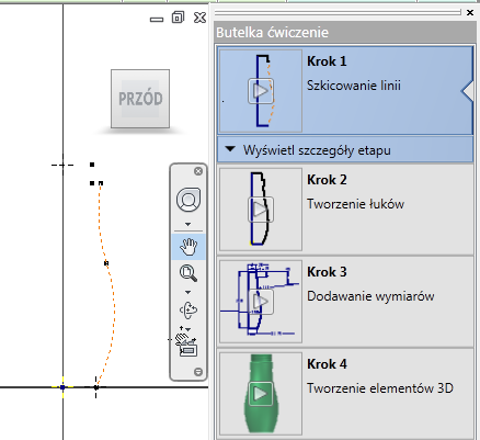Dostęp: w spisie treści Pomocy programu Inventor kliknij pozycję Ćwiczenia.