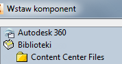 - W oknie dialogowym Wstaw komponent wybierz opcję Autodesk 360 znajdującą się na górze panelu położeń w oknie dialogowym.